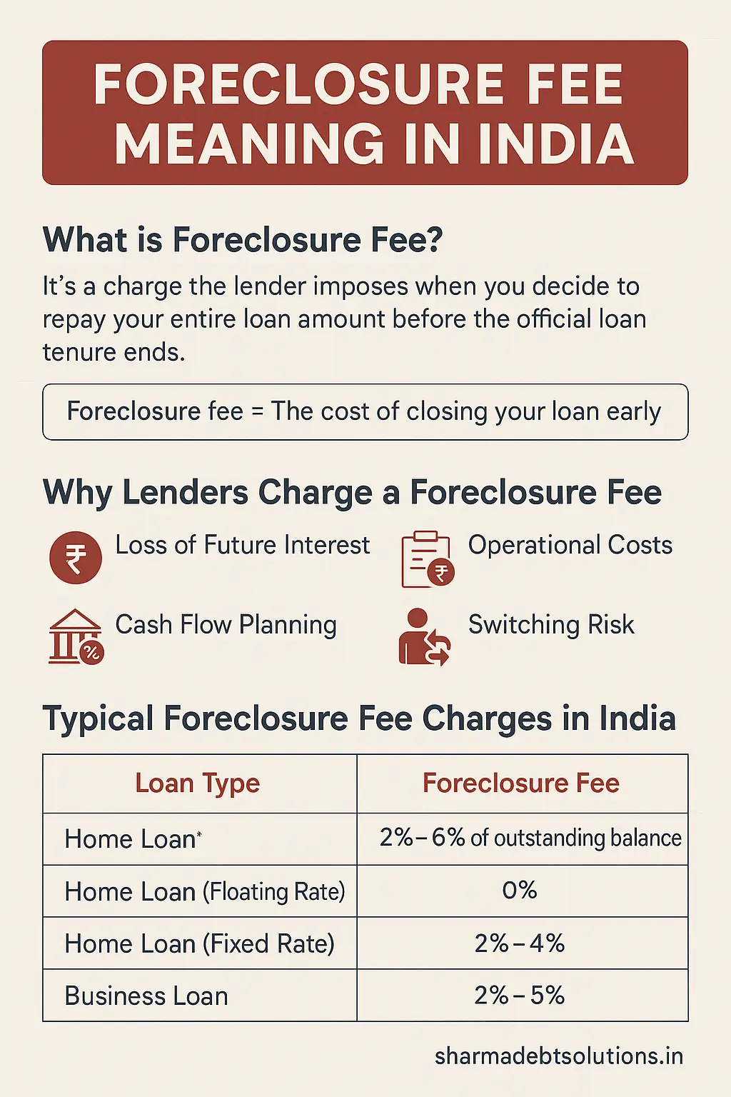 If you’ve ever taken a personal loan, home loan, or business loan in India, you’ve probably come across the term foreclosure fee. But what exactly is the foreclosure fee meaning? Why do lenders charge it? And can you avoid paying it?